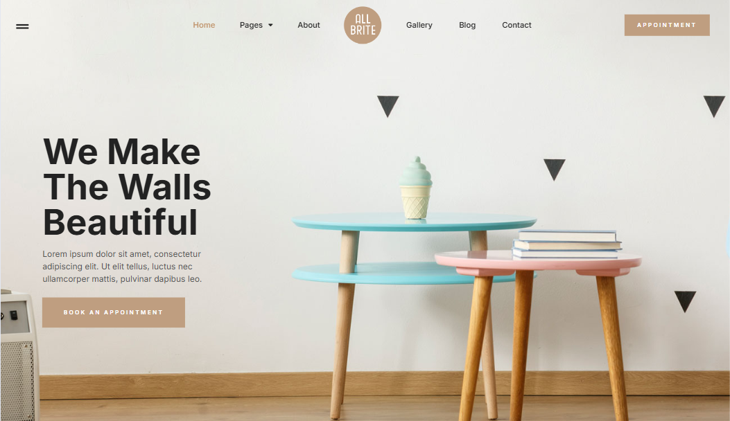 Allbrite is Elemontor Template Kit for a painting & wallpapering websites. This template has a vintage design. You can easily build construction and renovation company, painters website with this Elementor Template Kit just by drag and drop, no coding knowledge is required. Allbrite’s vintage layout will allow your content to shine and draw your visitors’ focus. This painting & wallpapering template has all the features that the website in its niche needs.