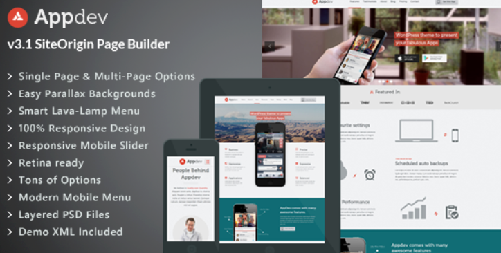 Appdev is a perfect one page theme for mobile app developers to showcase their work. Built on top of the a clean, modular framework, Appdev has multitude of features that you can leverage to to build a site to act as a launchpad for iPhone, iPad (iOS) or Android apps. The author did a thorough study of requirements of app developers by studying scores of actual app showcase sites, themes etc. Lots of hours of hard work has gone into this theme to make it THE theme that any app developer/marketer would want to use. Appdev is currently designed as a one page site but it can even be used to power a multi page site just as easily. It even lets you have multiple single pages, each with custom top menu navigation to internal sections.