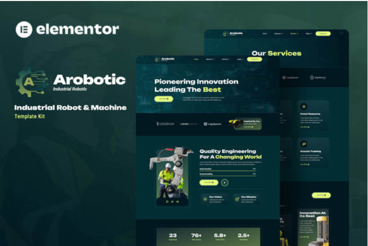 Arobotic is an Elementor Template Kit for quickly and easily creating websites for your business using the Elementor Page Builder plugin for WordPress. This is not a WordPress theme. Template Kits contain page content for Elementor page builder. This kit has been optimized for use with the free Hello Elementor theme but may be used with most themes that support Elementor.