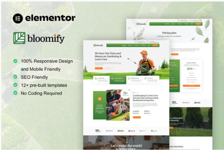 Bloomify is elementor template kit for gardening website and its related services. This template kit is perfect for gardening, landscape, decoration, even for lawn service website. It has 12+ pre-built templates with cool design and modern style. You can easily make beautiful green landscape & gardening website with this elementor template kit.