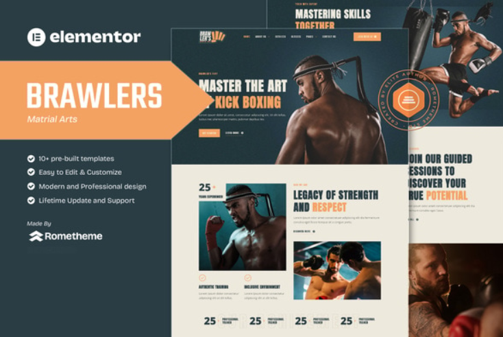 Brawler’s – Matrial Arts Services Elementor Template Kit is a comprehensive solution for creating modern and professional websites tailored for Martial Arts Services. Build your website effortlessly with responsive designs and no coding required.