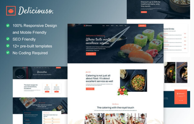 Deliciouso is Elementor Template Kit for catering & restaurant website. This template has modern layout with simple, professional and clean style. Suitable for any business related to food. You can easily build any business and service related to food such as catering website, delivery food, restaurant website, online food website, etc. Just drag and drop, no coding required.