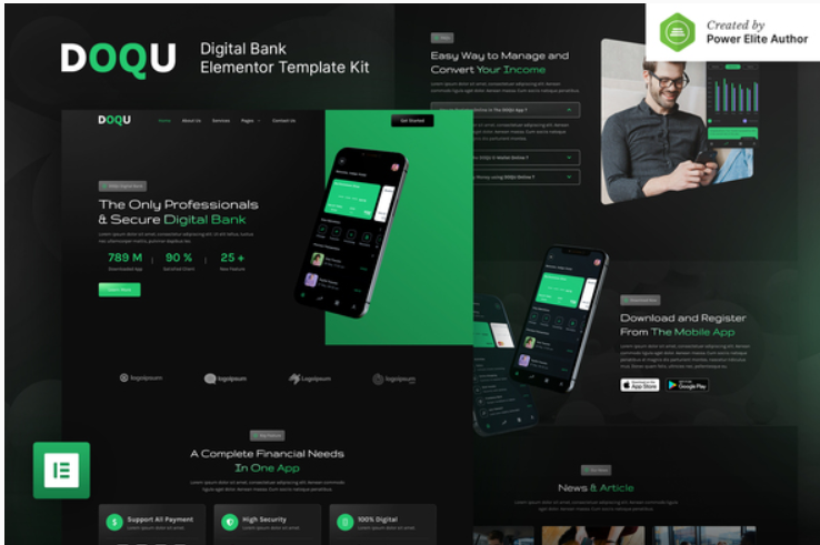 DOQU – Dark Digital Bank & E-Wallet Elementor Template Kit