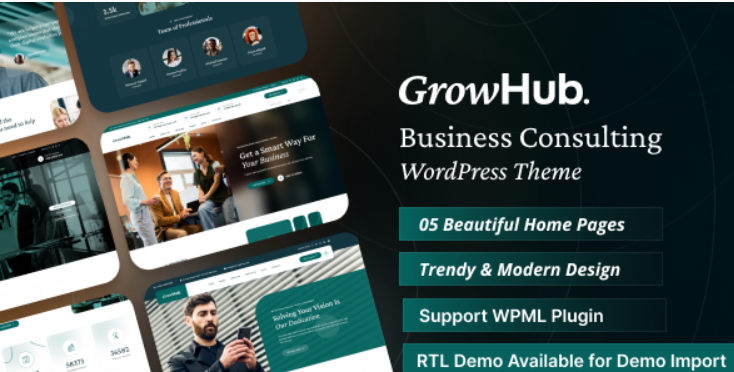 GrowHub – is a professional business consulting WordPress theme with colorful design and high page speed optimizations. It is suitable for creating business consulting, marketing consulting, business advisor, financial consulting, accounting services as well as all business and consulting-related websites.