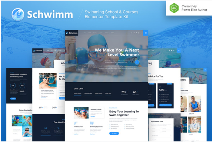 Schwimm is a modern and clean Elementor Template Kit that is perfect for those who want to create a professional-looking WordPress-based website for a Swimming School & Courses, Aquatic Education Centre, Diving Classes, and any related businesses. This template has a professional design with a 100% responsive layout, is retina-ready, and is very easy to customize because using Elementor so you don’t need a single line of coding!